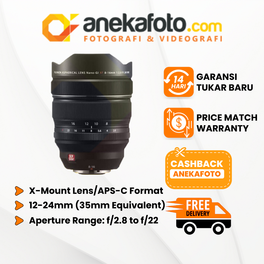 Product Highlights: 1. X-Mount Lens/APS-C Format 2. 12-24mm (35mm Equivalent) 3. Aperture Range: f/2.8 to f/22 4. Three ED and Four Aspherical Elements 5. Three Super ED Elements 6. Nano-GI Coating 7. Field Curvature Correction Element 8. Linear Focus Motor 9. Rounded 9-Blade Diaphragm 10. Weather-Sealed Construction