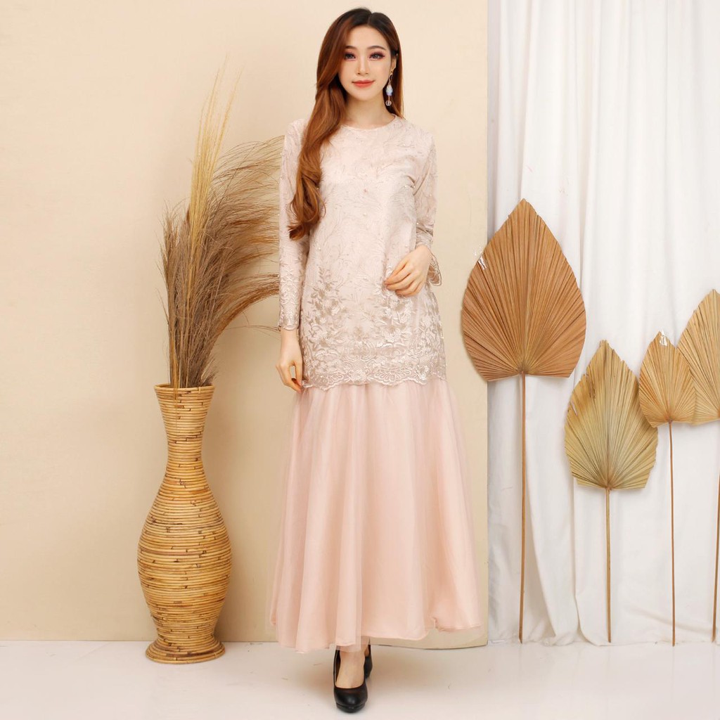 -Gamis bahan full tille bordir premium + gliter + mutiara -brukat nya full depan belakang dan tangan juga - furing bahan moscrepe tebal dijamin tidak terawang (BUKAN HYGET / BUKAN KAOS YAA) - ada tile jaring polos di bagian bawah - allsize fit to XL LD 102cm, panjang gamis 140cm - lingkar ketiak 50cm, pj tangan 50 cm - resleting belakang, bagian bawah gamis model duyung