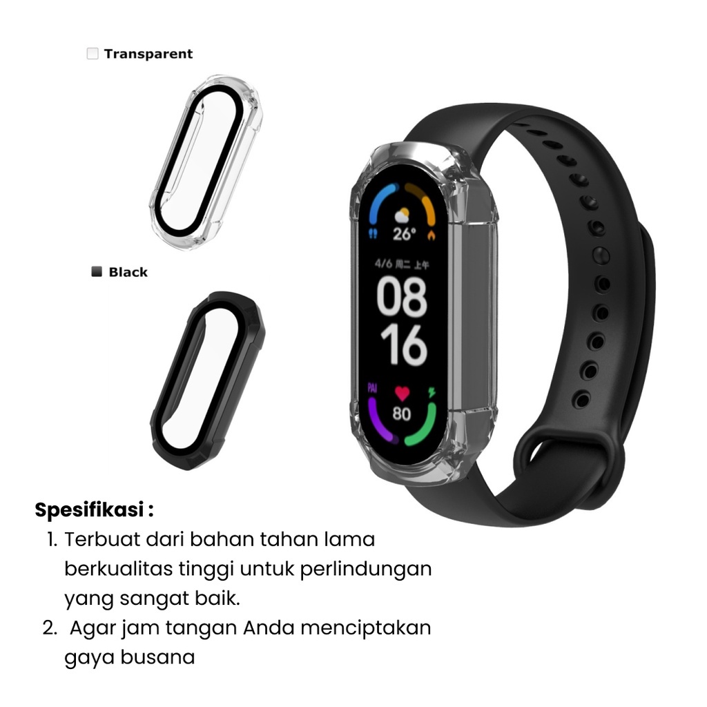 Handphone & Aksesoris > Perangkat Wearable > Aksesoris Perangkat Wearable > Full Case Xiaomi Band 4 5 6 Bumper 2 in 1 Screen Protector / PC Frame + Tempered Glass