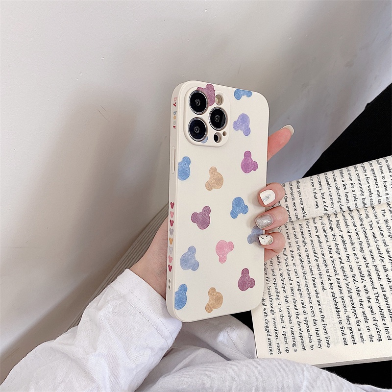 Handphone & Aksesoris > Casing & Skin > Casing & Skin Handphone > Full screen watercolor Mickey casing iphone 13 12 11 pro X Xs max 7 8 plus SE2020 Disney soft silicone case iphone case iphone couple