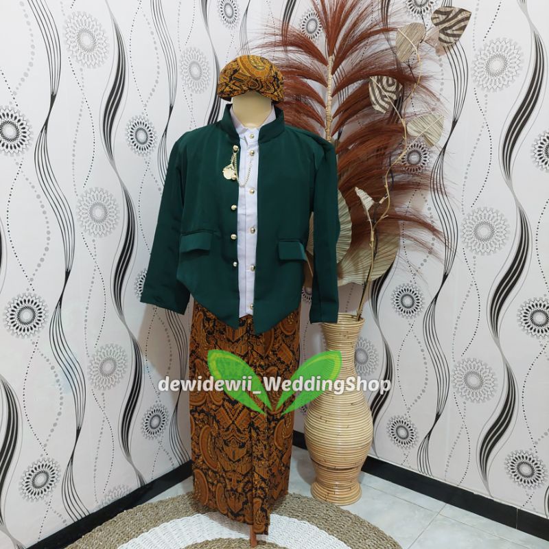 [Full Set] Baju Adat Jawa Cowok / Baju Manggolo / Baju Pagar Bagus | Nuansa Hewes Hijau Botol