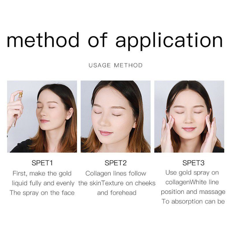 Pemakaiannya tinggal tempelkan benang pada area wajah yg dikehendaki, semprot serum spray, dan pijit pelan2 sampai benangnya jadi partikel2 nano hingga meresap ke dalam kulit