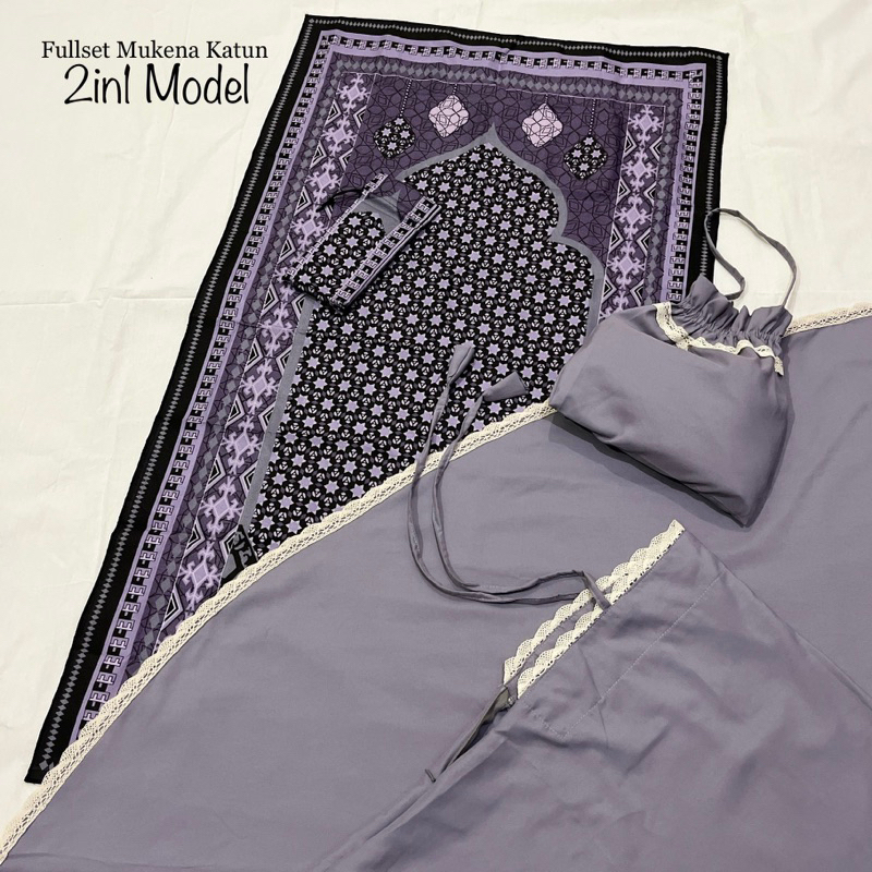 Detail Full Set Mukena Travel Katun Renda 2in1 + Sajadah Traveling Motif Kashmeer
