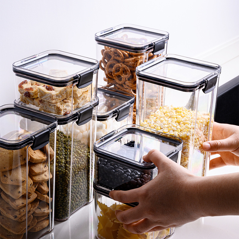 Perlengkapan Rumah > Peralatan Dapur > Tempat Penyimpanan Makanan > (FULLSET) Toples Snack Akrilik Tutup Hitam Penyimpanan Makanan Sebaguna Hitam Kedap Udara Tempat Penyimpanan Cereal Toples Kotak Bening Kontainer Makanan