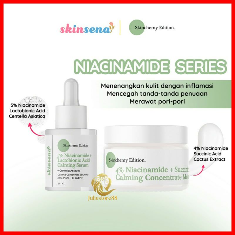 Dengan Membeli Variasi Bundle, kamu akan mendapatkan produk: 1. 5% Niacinamide + Lactobionic Acid Calming Serum 20ml (BPOM NA18220110797) 2. 4% Niacinamide + Succinic Acid Calming Concentrate Moisturizer 30ml (BPOM NA18220110798)