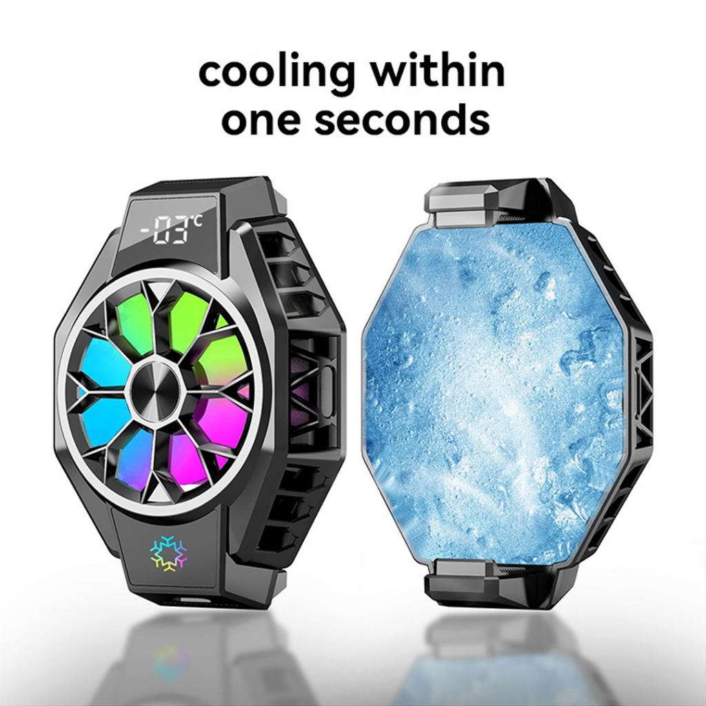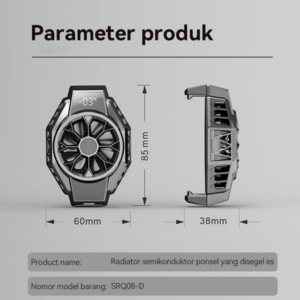 Fitur: * Chip Semikonduktor dapat secara signifikan lebih dingin menjaga suhu smartphone dari kepanasan dengan cepat! Maksimal pendingin suhu bisa sampai dengan dibawah 5 - 15 ℃. * Noise Reduction RGB Fan Terdapat teknologi kipas tambahan, yang berfungsi untuk mengeluarkan suhu panas dari Smartphone. Serta kipas memiliki lampu RGB. * Thermostat Display dilengkapi dengan Thermostat Display yang dapat menunjukkan suhu smartphone anda pada saat digunakan. * Charging Port terdapat lubang Type-C to C / Lighting tambahan untuk ke Smartphone, sehingga tidak lagi memerlukan Adaptor tambahan untuk charging HP dan Pendingin. * Super Compability mendukung hampir semua jenis Smartphone seperti iPhone/Android/Tablet dengan lebar 68-89mm atau lebar maksimal 9cm. * Comfortable Clip & Thermal Cooling Pad Terdapat silicon pd tepian pendingin, sehingga dapat menempel pd HP dengan erat dan melindungi HP dari lecet. Area Cooling Pad sudah dilapisi dengan Thermal Pad Silicon, sehingga dapat menjaga suhu CPU smartphone secara lebih menyeluruh.