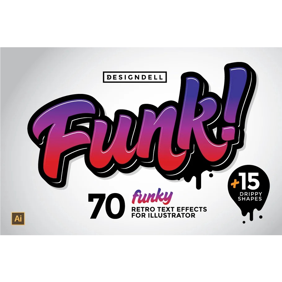 About the Product 70 funky colorful one click text styles for illustrator CS3+. Includes 15 drippy vector shapes, help file, and graphic style library.