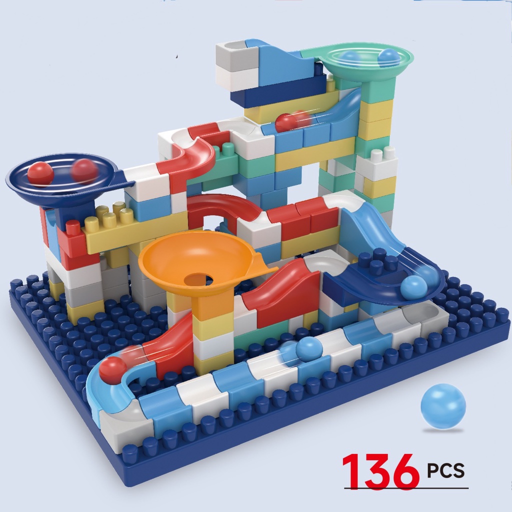 Ibu & Bayi > Mainan > Mainan Balok > [FUNNY]136pcs Mainan Balok Susun Bola Dan Rail Dengan Kotak Penyimpanan Dan Tutup Papan Balok / Brick With Ball And Track Adventure / Balok Susun Adventure
