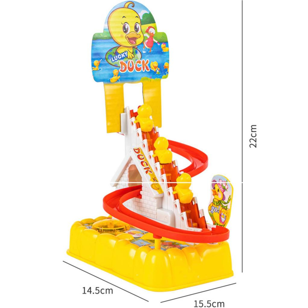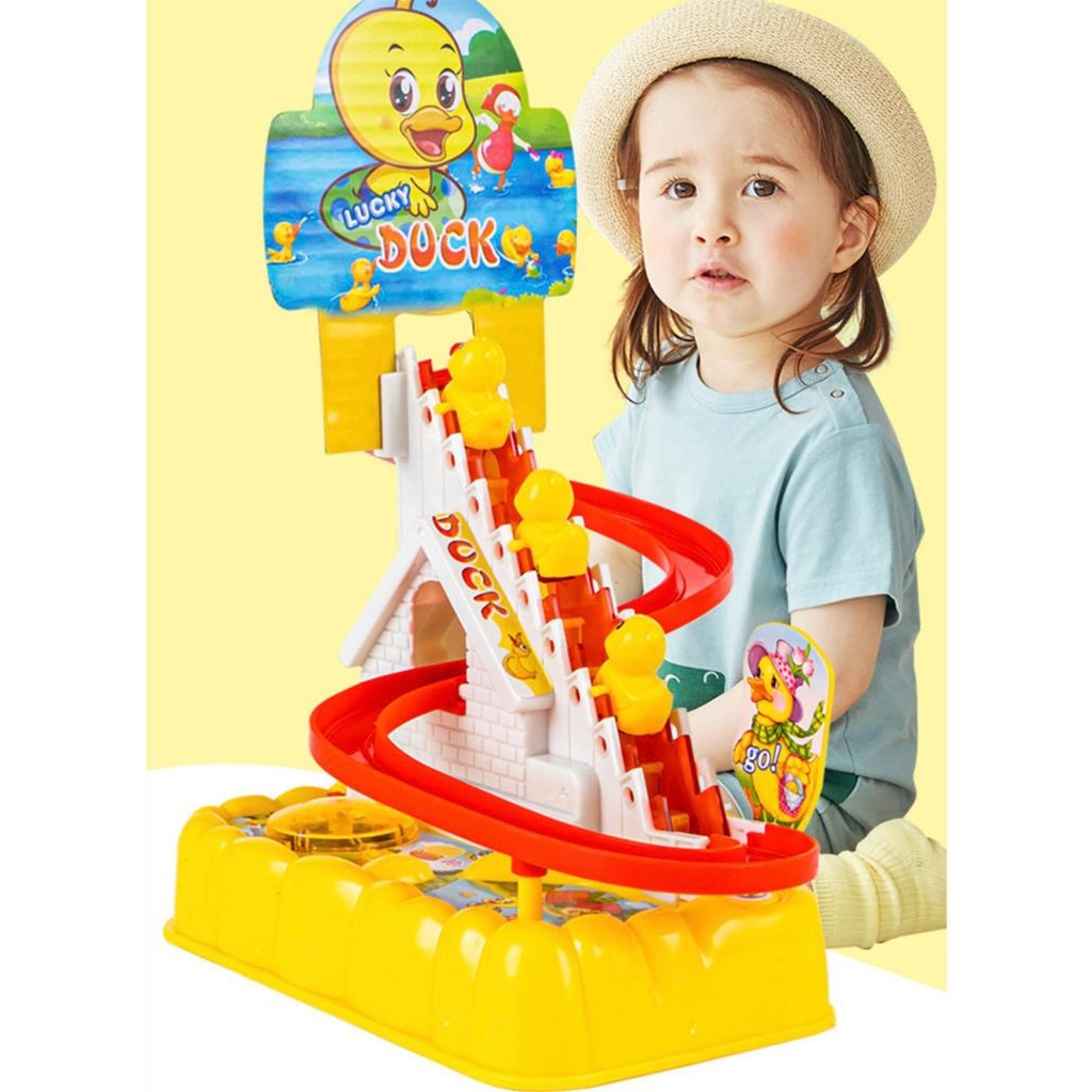Detail [FUNNY] Mainan Seluncuran Otomatis Bebek Naik Tangga Lucky Duck Track Balap Berlampu dan Music / Mainan Luncuran Rail Mutar Auto