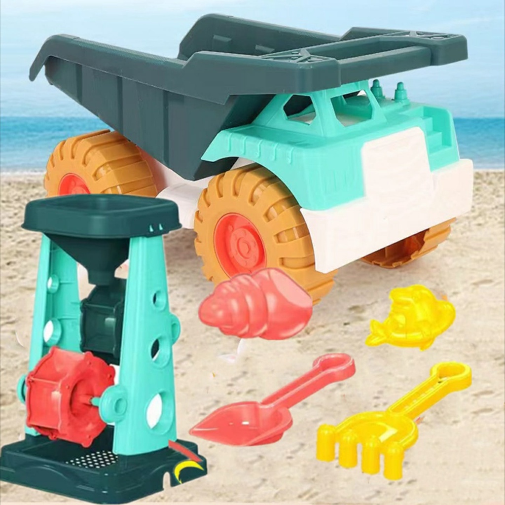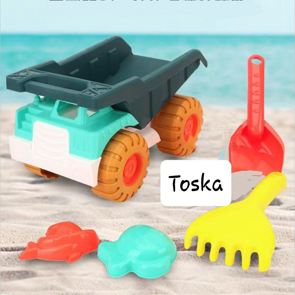 Mainan pasir pantai ini lengkap mobil angkut pasir. Mainan tower pasir dan berbagai perlengkapan untuk keseruan bermain pasir