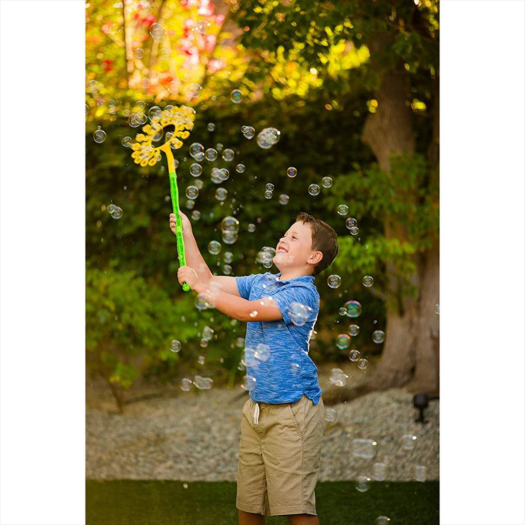 - With the wave of a wand you can instantly create zillions and zillions of bubbles! - With 33 mini wands in one plus the flexible 3ft. handle it is easy to make more and more bubbles. - Simply fill the tray with Gazillion Bubbles solution, dip the wand into the tray, and wave around to make more bubbles than ever before! - The tray is designed with a spout so once the bubble fun is over, pour any unused solution back into the bottle to be used next time! - Mega-Zillion Wand includes two 8oz. bottles of Gazillion Bubbles Solution. - Appropriates for ages 3 years and up.