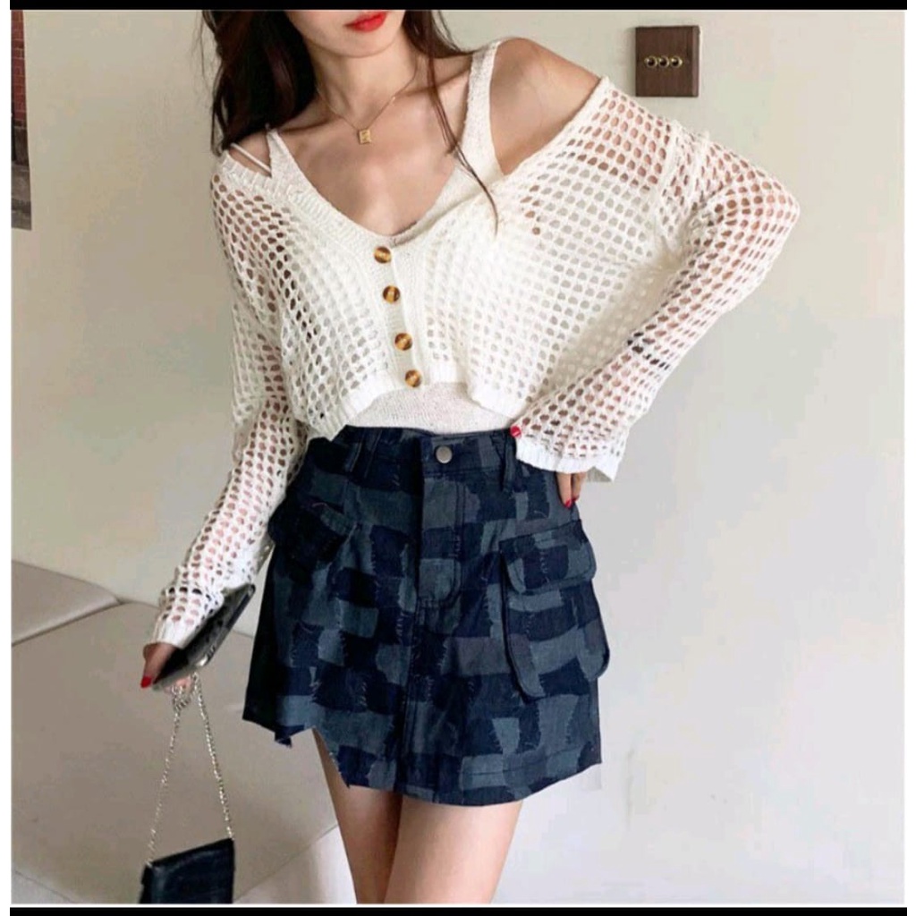 Cardigan kancing fishnet 2in1 + inner HQ premium FIT TO XL