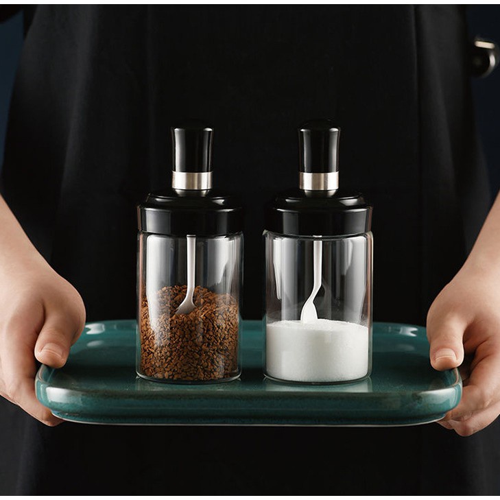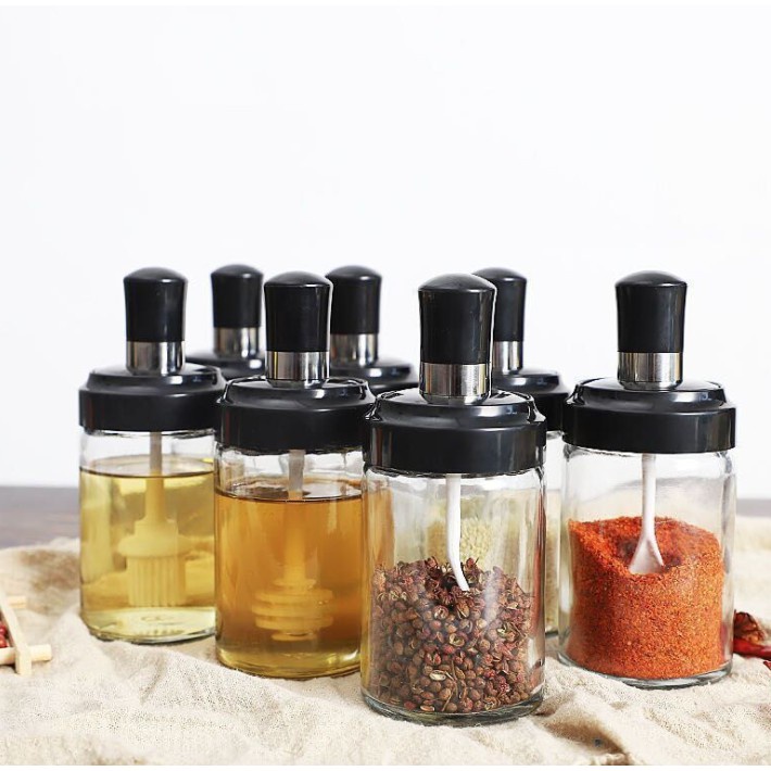 Perlengkapan Rumah > Peralatan Dapur > Tempat Penyimpanan Makanan > FYGALERY HL0179 Botol Tempat Bumbu Dapur Kaca Dengan Tutup Sendok Kedap Udara Serbaguna
