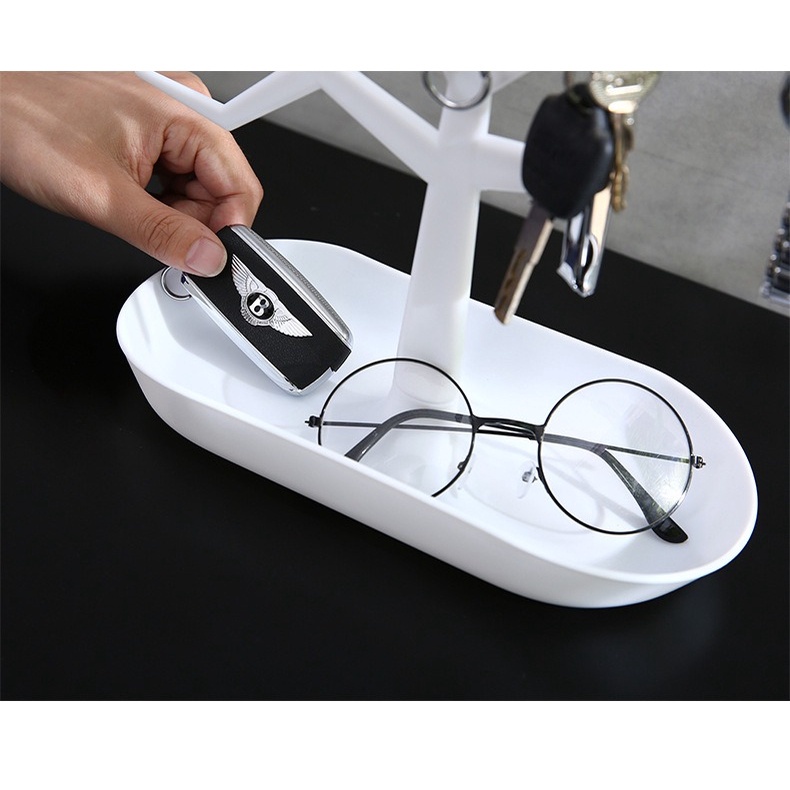 Fitur : Gantungan perhiasan didesain elegan agar terlihat seperti pohon. Tali persegi panjang di bagian bawah dapat digunakan untuk menyimpan cincin, gelang, kalung, dan barang lainnya. Menjaga perhiasan Anda teratur dan bebas kusut serta mudah ditemukan. Dapat dilepas, menghemat ruang saat tidak digunakan.