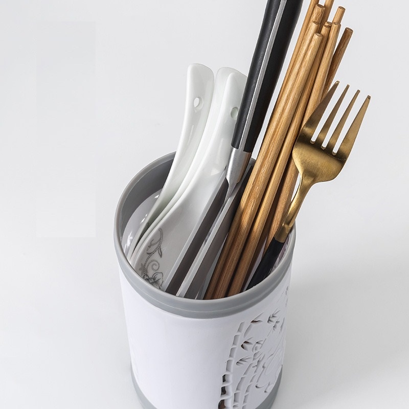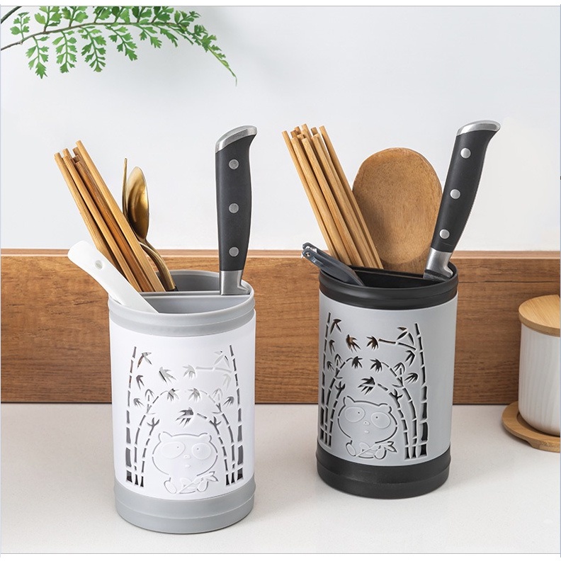 Perlengkapan Rumah > Peralatan Dapur > Rak Dapur > FYGALERY HL0320 Rak Sendok Garpu Model Tabung 3 Sekat Tempat Penyimpanan Sendok Sumpit Pisau Motif Bambu Wadah Pengering Sendok Tempat Tatakan Alat Makan Rak Gantung Dapur Serbaguna