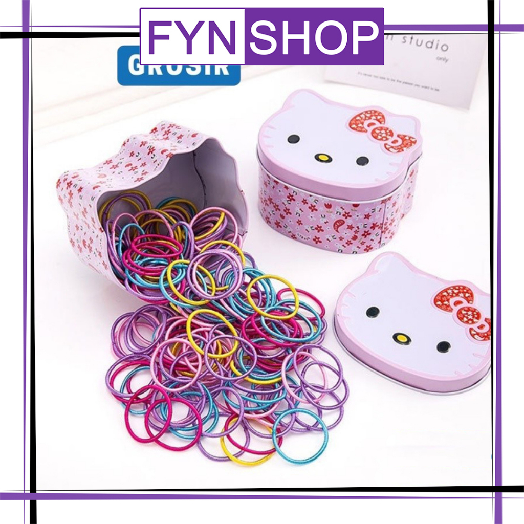 Detail Fynshop ♛ | AR111 Ikat Rambut Anak Isi 100 Free Kaleng Kartun Lucu Aksesoris Karet Rambut Anak