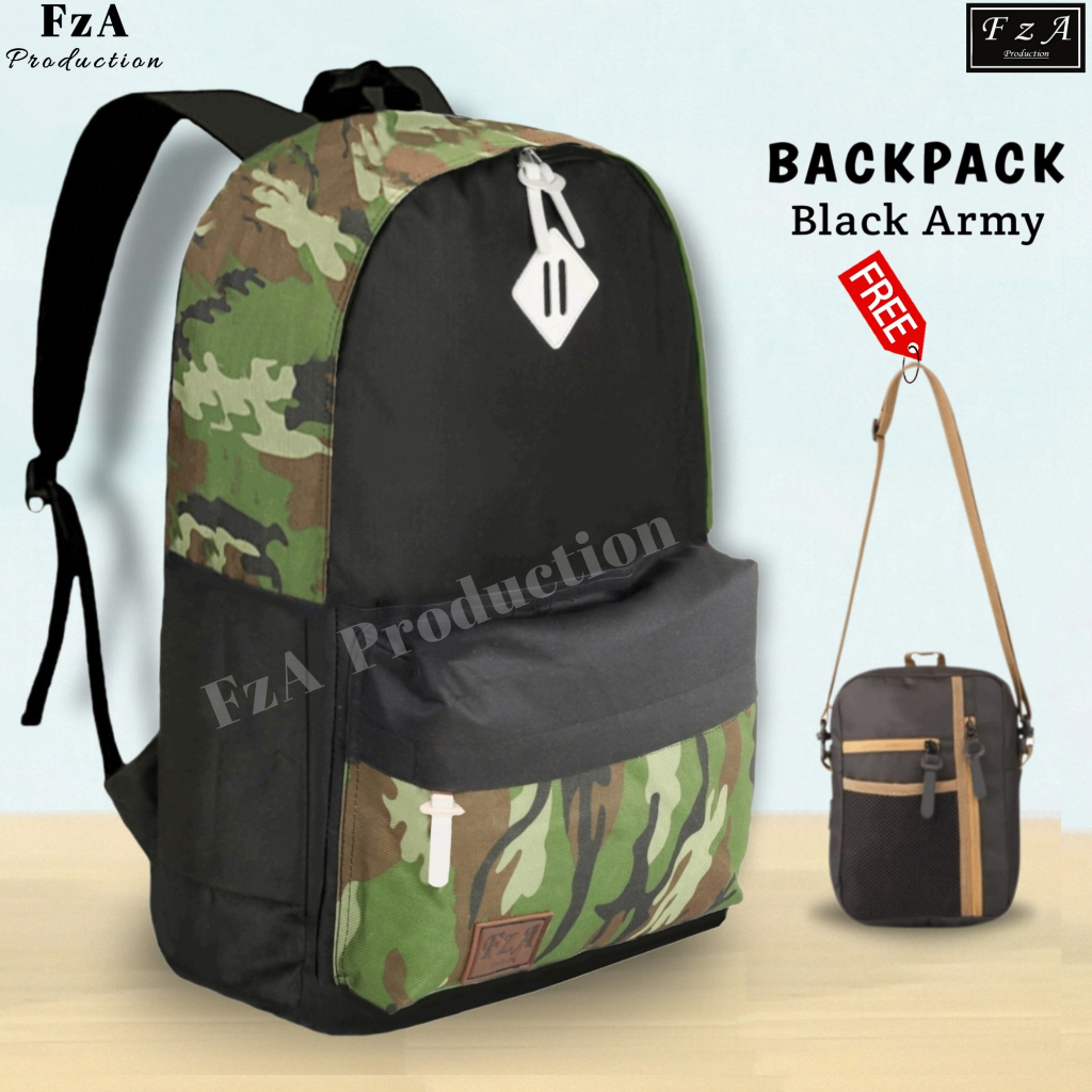 Detail FzA Official -Tas Ransel Distro Casual pria wanita / Tas Ransel Laptop / Tas Ransel Sekolah - BASL Black Army