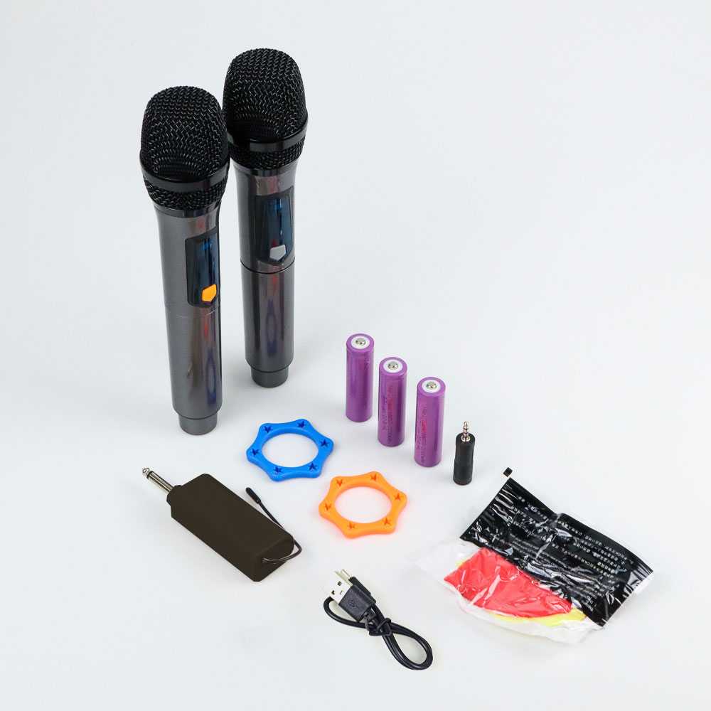 Mikrofon ini bisa menjadi solusi untuk Anda yang hobi menyanyi. Pasalnya, Anda bisa bernyanyi selayaknya di KTV dengan menggunakan mikrofon karaoke ini. Mikrofon satu ini memiliki desain portabel dan dilengkapi dengan koneksi wireless, sehingga Anda bisa bernyanyi dengan bebas bergerak tanpa terganggu adanya kabel. Fitur Kualitas Suara Memukau Suara yang dihasilkan dari mikrofon ini sangat sempurna karena ada fitur HIFI Stereo Clear Sound. Fitur ini mampu memberikan kualitas output suara yang jernih sehingga enak didengar di telinga. Tenaga Baterai Isi Ulang Mikrofon karaoke ini menggunakan 1buah baterai 18650 dengan kapasitas 1200 mAh yang dapat digunakan selama 10-12 jam. Baterai terpasang di bagian bodi mikrofon dan bisa Anda lepas pasang sesuai dengan kebutuhan. Plug & Play Mikrofon wireless ini sudah dilengkapi dengan receiver mini yang mampu menjangkau hingga 50 meter. Anda cukup mencolokkan receiver ini ke perangkat audio yang Anda inginkan, maka Anda sudah bisa menggunakan mikrofon ini dengan baik.
