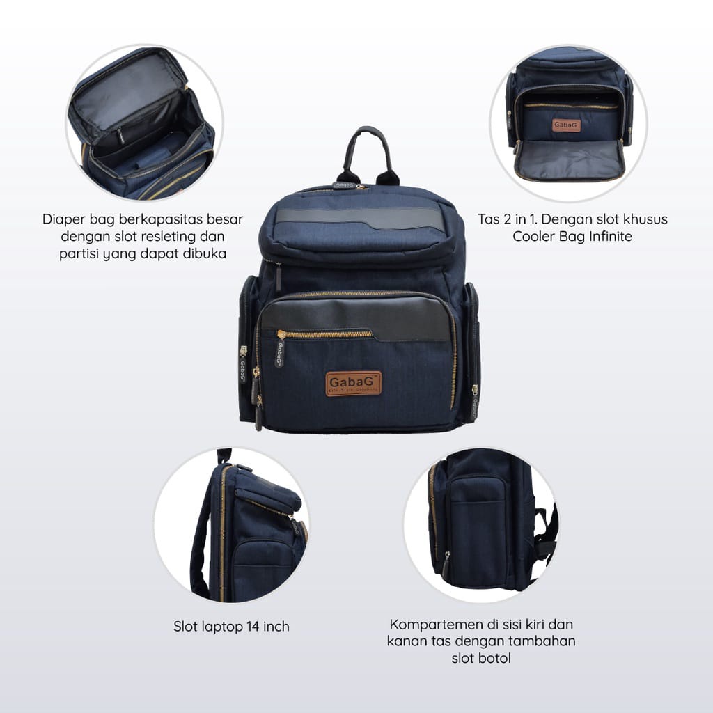 Troy Gabag Executive series dari Gabag dipadukan dengan aksen kulit dan resleting emas, cocok untuk dipadupadankan dengan pakaian yang bermotif, bercorak, ataupun polos. - Cooler bag / thermal bag berada pada bagian bawah. - Coolerbag berbentuk infinite bisa di lepas pasang dari bagian tas. - Terdapat handle pada bagian atas tas agar memudahkan saat membawanya. - Tersedia pocket samping. - Capacity : 8 – 10 botol ukuran 100ml - Dimensi : tinggi 37,5 cm, panjang 30,5cm, lebar 19,5 cm