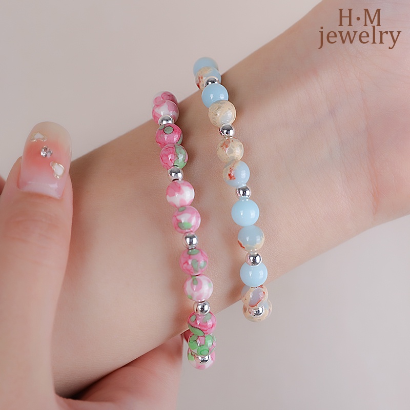 Detail Gadis Bunga Sakura Suasana Warna Shoushan Batu Persegi Piring Gelang Aksesoris Manis