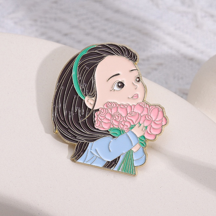 Detail Gadis Lucu Enamel Pin Merah Muda Buket Bunga Gadis Bros Lencana Kerah Pin Packback Perhiasan Aksesoris Hadiah Untuk Teman