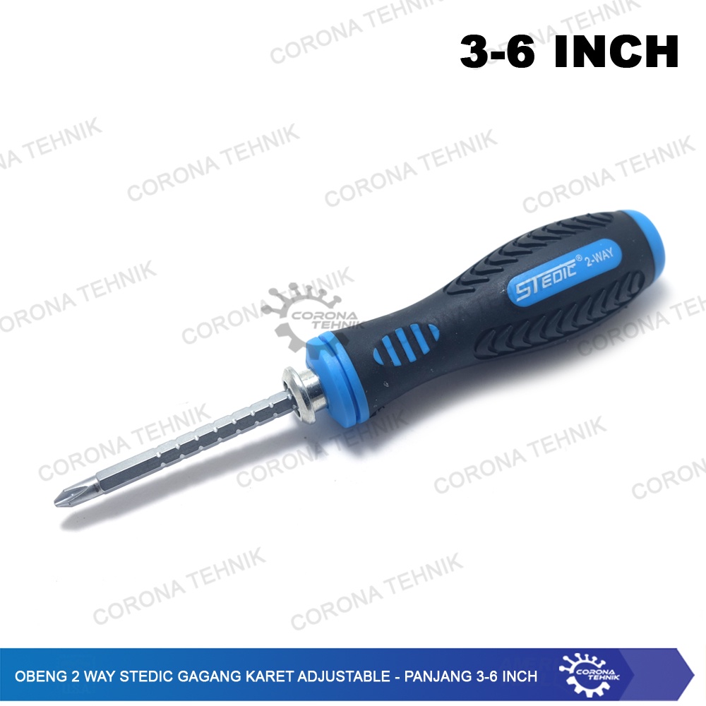 Obeng 2 Way Stedic Gagang Karet Adjustable - Panjang 3-6 Inch