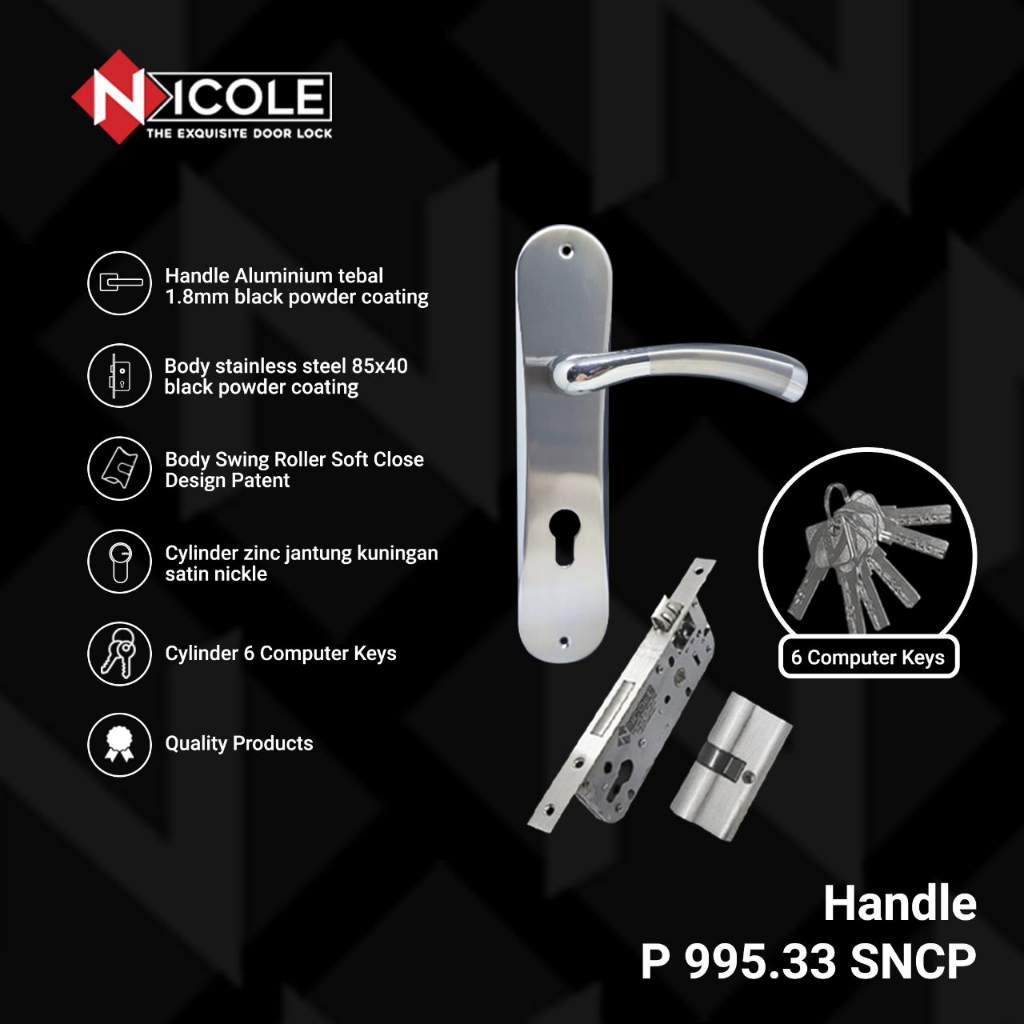 Nicole Gagang Pintu Set Dengan Body Swing Roller + Cylinder SNCP 6 Anak Kunci Komputer Handle pintu besar, cocok untuk pintu utama atau pintu kamar. Kini hadir dengan 6 anak kunci