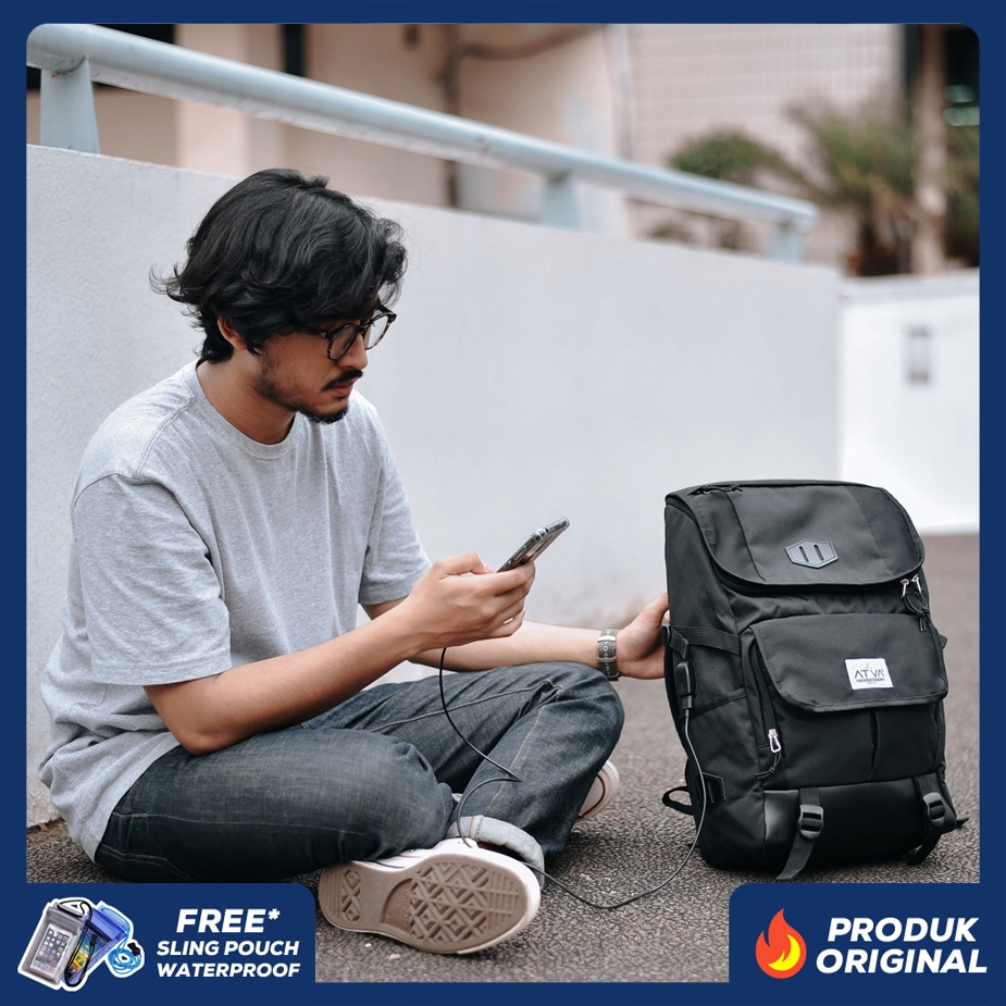Detail GALARDO BLACK ORIGINAL x ATVA Tas Ransel Casual Hitam Pria Daily Backpack Kuliah Kampus Kerja Kantor Sekolah SMA SMK Remaja Dewasa Tas Punggung Laptop Ukuran Besar 14 15 16 Inch Bagpack Distro USB Charger Premium Outdoor Travel Bag Keren Terbaru Kekinian