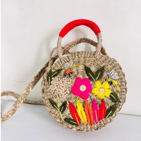 Tas anyaman mendong ini di kombinasikkan dengan sulam tangan yang cantik dan menarik.