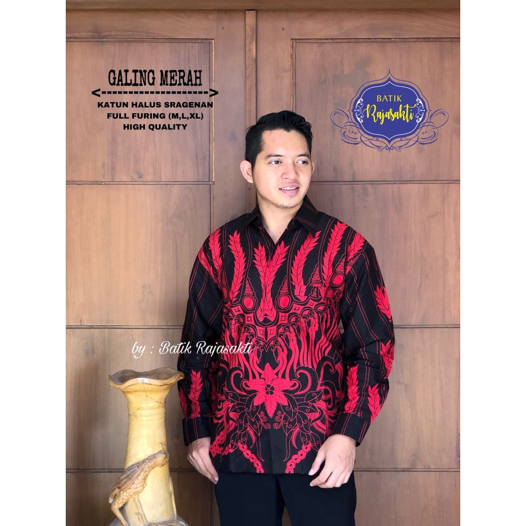 GALING MERAH2RAJASAKTI KEMEJA BATIK SOLO PRIA LENGAN PANJANG LAPIS FURING ATASAN BATIK PREMIUM MODERN KATUN HALUS BAHUWIRYA BANAMITRA BANAMITRA PUTIH BANGSAWAN BAYU PUTRA BERLIAN BIRU BHARATAYUDA BIMASENA BIRENDRA BIRU INDAH BRAHMAKERTA BRAHMAKERTA MERAH