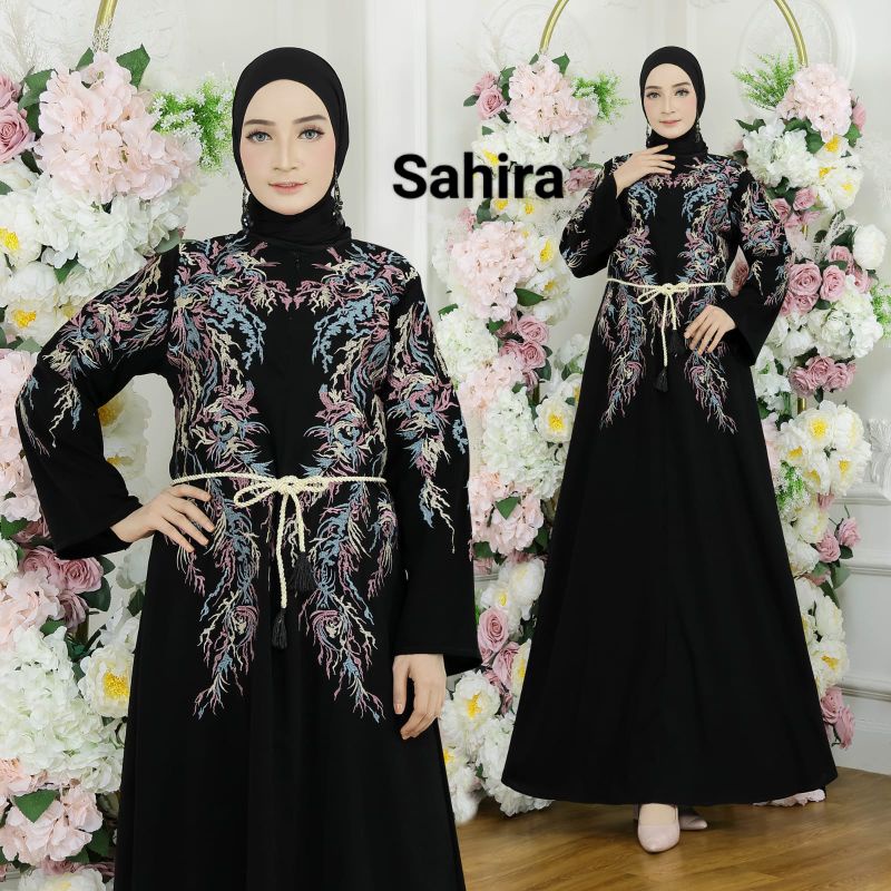 *NEW Abaya Bordir Sahura Busui No Belt/ tanpa sabuk/sabuk hanya pemanis Bahan Jetblack Saudi Kombinasi Bordir elegan cantik bertabur mata2 Ready size s m l xl - No Belt - Ressleting depan - Perpaduan bordir warna yang cantik - Wudhu freindly