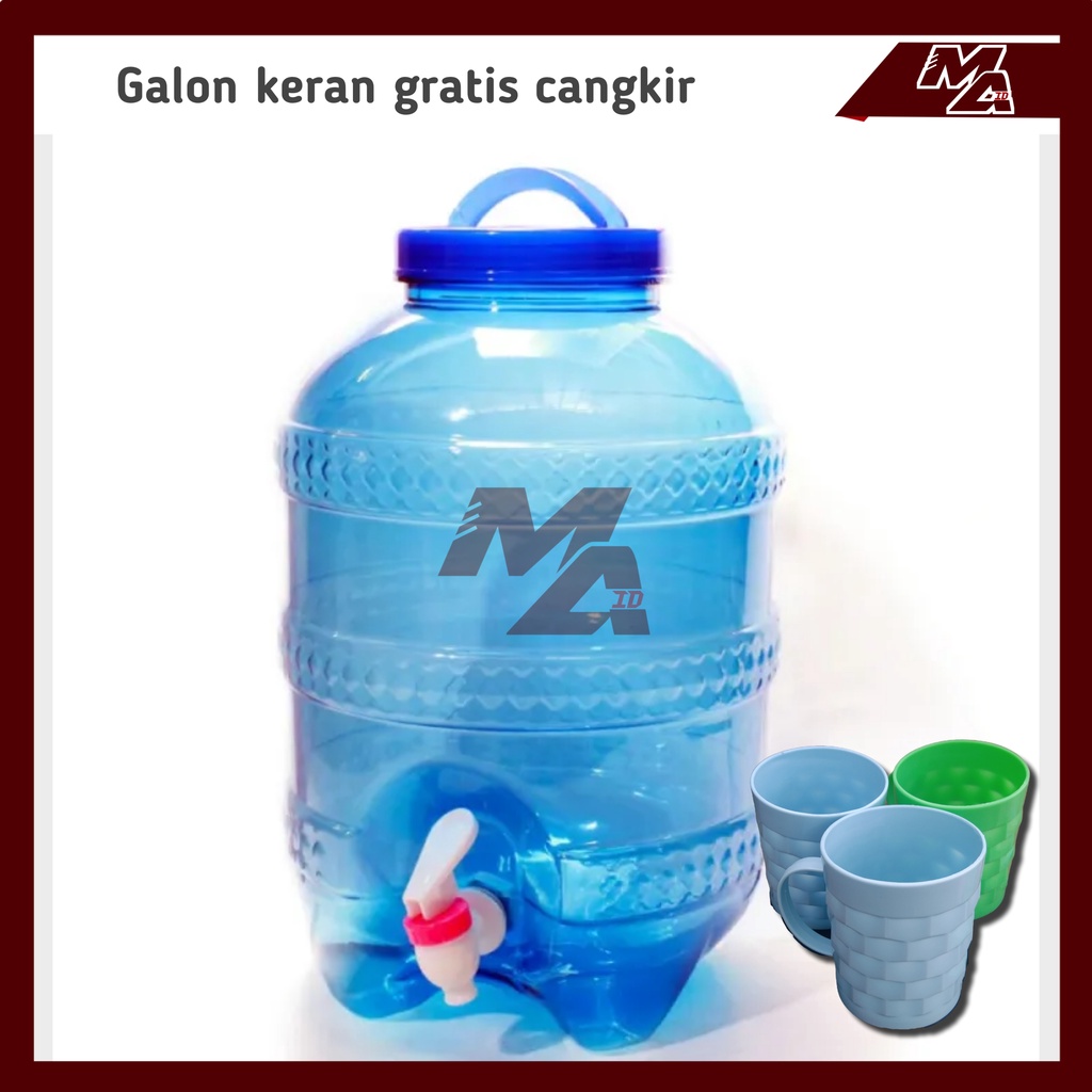 Galon keran botol/wadah air minum isi ulang 8/12 Liter Gratis 3 Pcs cangkir