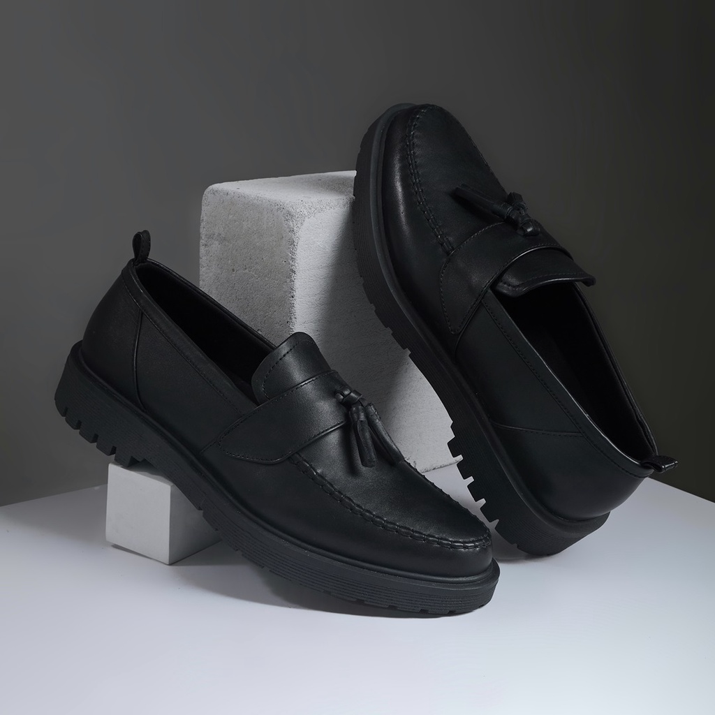 Sepatu Pria > Sepatu Formal > Loafer > GAMA BLACK ORIGINAL x KENZIOS Sepatu Loafers Hitam Kulit Sapi Asli Pria Slip On Semi Formal Kerja Kantor Slop Pesta Wedding Kondangan Nikah Selop Kantoran Casual Penny Loafer Genuine Leather Footwear Big Size Jumbo Ukuran Besar 44 Keren Terbaru Kekinian