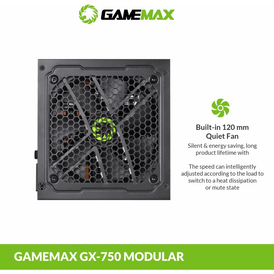 Power Supply Gamemax GX-750 Modular 80+ Gold ATX GameMax GX-750 80+ Gold ATX Power supply, One of the innovative Gold design basis on Platinum Level, LLC and DC-DC circuit, the classic efficiency over 92%, The free-cable technology featured. GameMax GX series power supply 80+ Gold certified that offers great value to gamers and system builders, FDB Fan reduces heat during heavy load while keeping the noise level down, Designed with stability and durability, GX Series is the perfect choice to power your systems! ⚡LLC+DC--DC high-efficiency 80+ Gold APFC Certified ⚡DC-DC integrated energy storage inductor, quiet and highly efficient ⚡100-240Vac full voltage input ⚡Multiple PCIE interfaces fully support the latest graphics cards ⚡Integrated all solid capacitor, Free-Cable module output, lower loss power ⚡Farad resonance capacitor is stable and efficient ⚡105℃ mainstream capacitor has long life and smooth output ⚡The temperature-controlled fan is extremely quiet ⚡Total SIX levels of protection, OTP, OCP, SCP, OVP, UVP, OPP ⚡All black flat pure copper output line, efficient and powerful ⚡Components by SMT produced, Quick heat dissipation and more stable