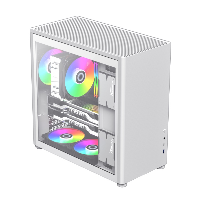 Form Factor : ATX Deskop Chassis Chassis : SPCC 0.8/0.6mm PSU Form Factor : ATX M/B Form Factor : ATX,Micro-ATX, DTX,Mini-ITX Front Panel : Metal Steel Top Panel : ABS, Steel Side Panel - Left : Tempered Glass - Right : Tempered Glass