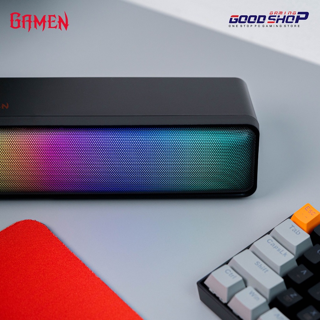 📋Spesifikasi: *Model : Gamen GS6 *Output : 6W *Speaker specifications : 64mm x 2 *Frequency range : 100Hz-18KHz *Signal-to-noise ratio : ≥70dB *Power input : USB 5V 1A *Product size : 38 x 8 x 6 cm *Product weight : 560g