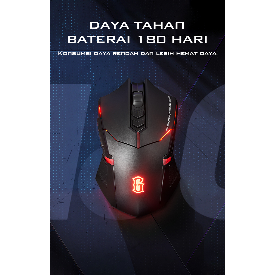 💎Keunggulan: 1. Presisi tinggi, sehingga bermain game jadi lebih menyenangkan 2. Teknologi nirkabel professional 2.4G, transmisi cepat dan stabil 10m dan sensitif 3. Desain ergonomis, nyaman digunakan menyesuaikan telapak tangan anda 4. Daya tahan baterai hingga 180 hari