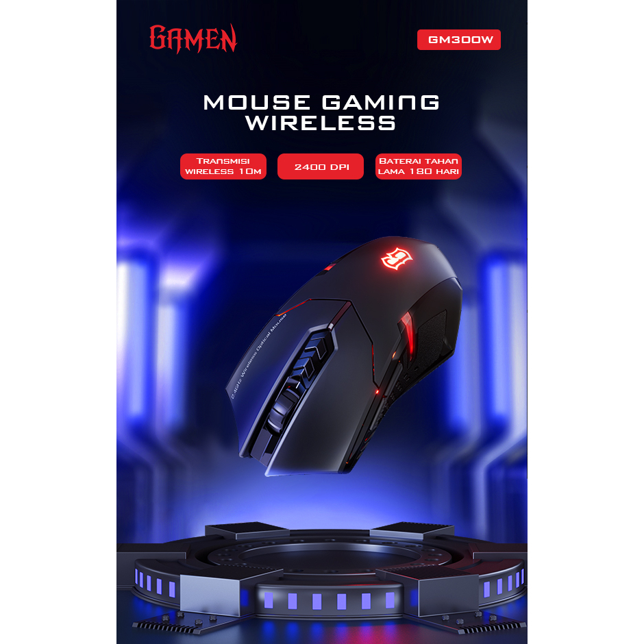 Komputer & Aksesoris > Gaming > Gaming Mouse > GAMEN Mouse Gaming Wireless GM300W 2400 DPI Black / Mouse USB / Mouse Gaming Tanpa Kabel Presisi Tinggi Original - Garansi 1 tahun