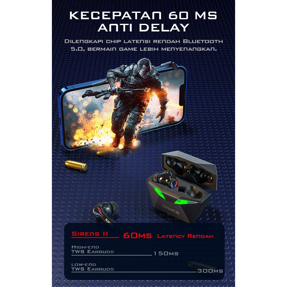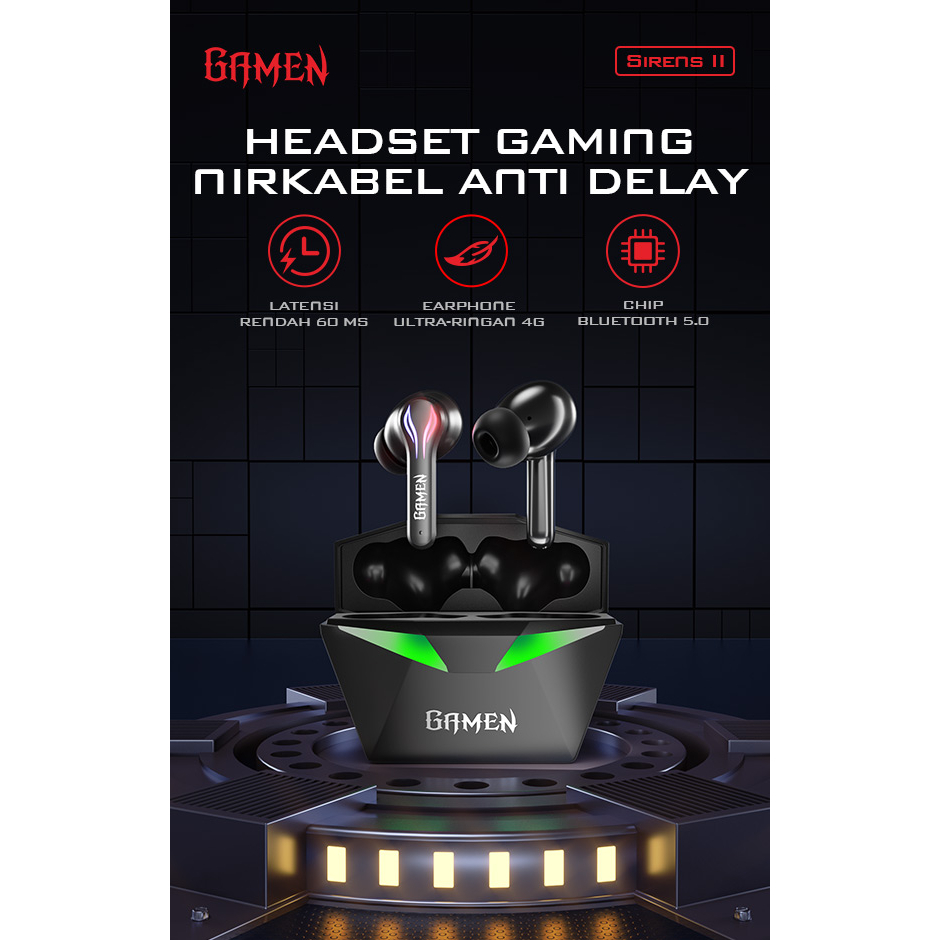 GAMEN Sirens II Headset Earphone TWS Anti Delay Low Latency 60 MS LED HD Sound Original - Garansi Resmi 1 Tahun