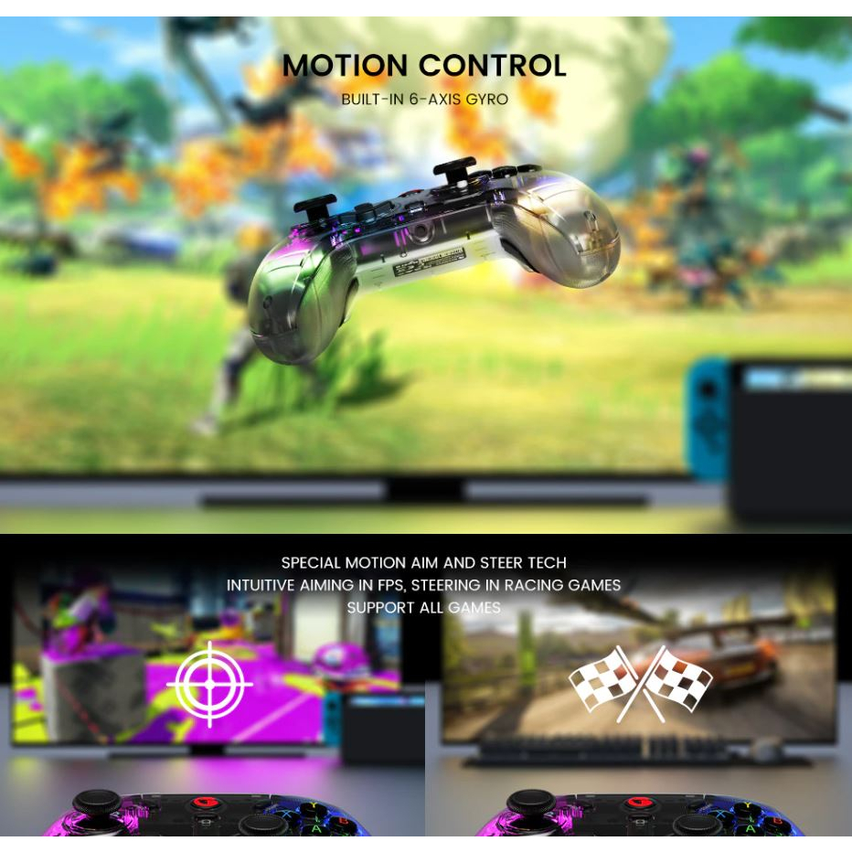 B. Special Motion Aim/Steer tech: Motion control brings more fun and engagement to the game. Now with motion support on PC and Android devices, you can aim or steer in any game just by tilting the controller, after a toggle in the GameSir T4k App software. So games played with T4k feel even more true to life.