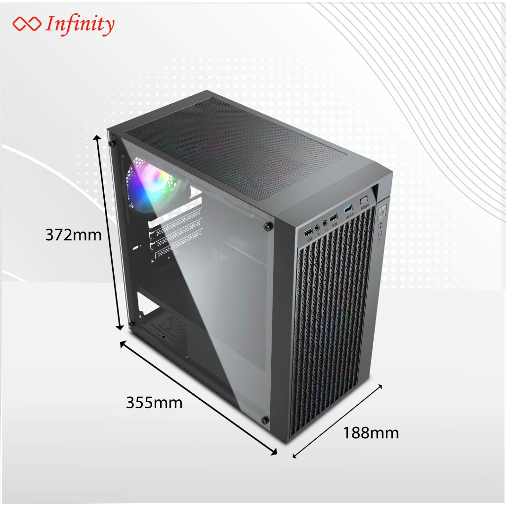 Detail Gaming Case Infinity STRIKE + 3 Fan RGB | Casing PC mATX Compact