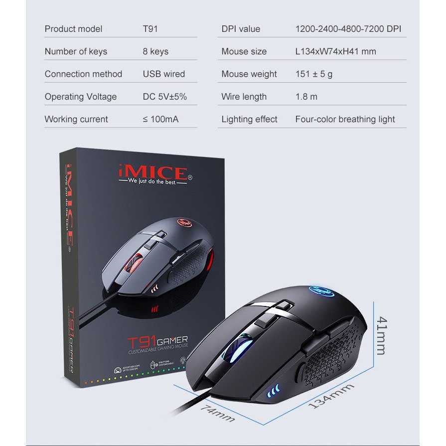 Spesifikasi iMice Gaming Mouse LED 7200 DPI - T91
