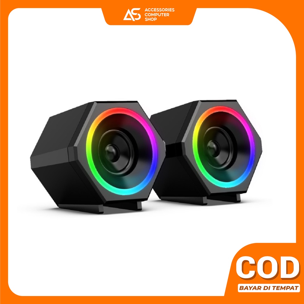 💎Keunggulan Produk: 1. 2.0 sound channel desktop speaker 2. Speaker dengan lampu LED yang keren 3. 5V USB powered 4. Dengan Switch volume control 5. Sangat mudah untuk mengatur volume 6. Mendukung jenis perangkat output jack AUX 3.5 mm