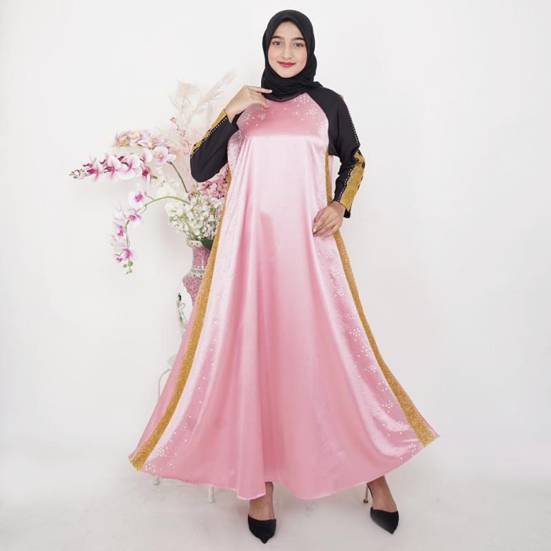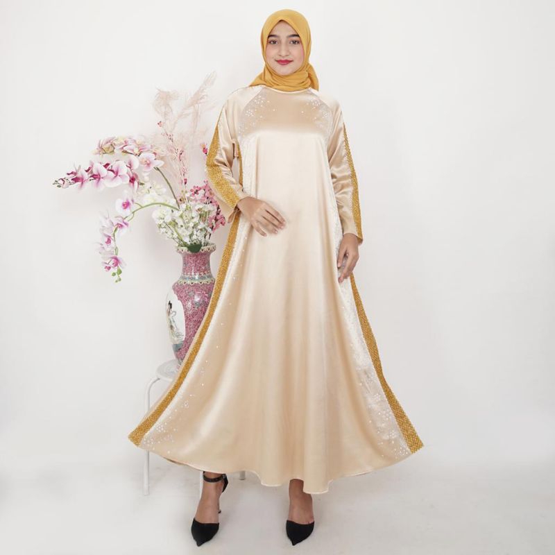 bahan satin marbella lengan jersey ld standart 110 ld jumbo 130 panjang 140 tersedia warna krem, pink, maroon, navy, hitam, salem