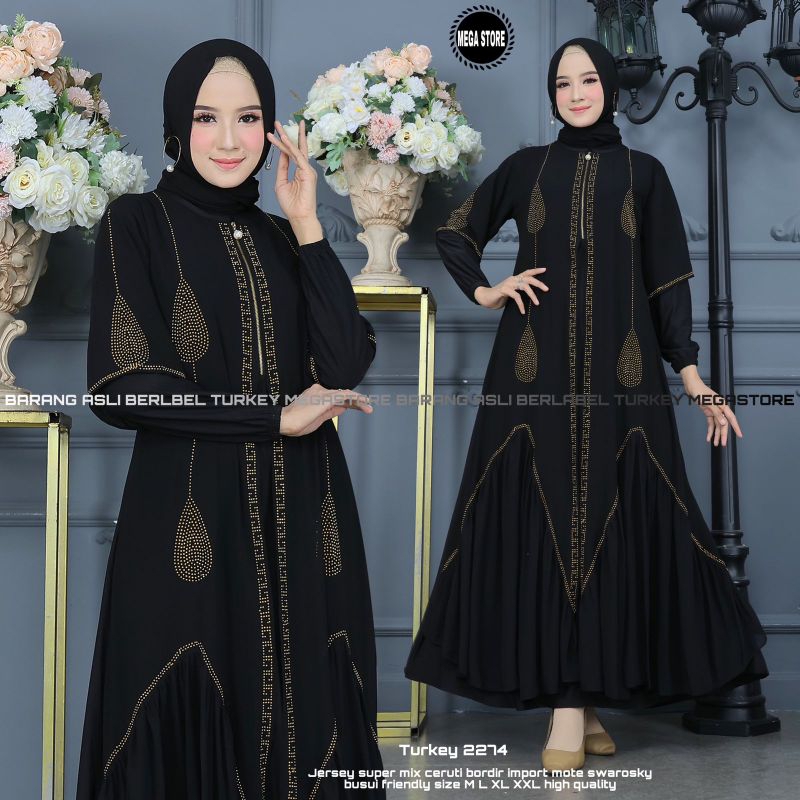 Detail Gamis Abaya Turkey 2274 Mega Store Longdress Busana Muslimah