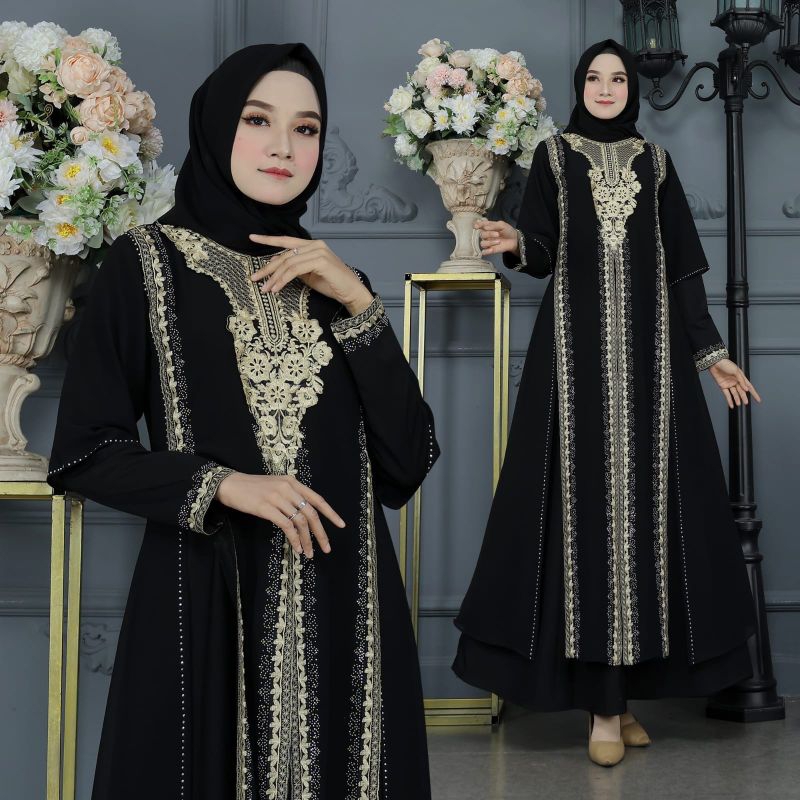 Ready gamis abaya dengan kombinasi bordir dan payet yang elegan...