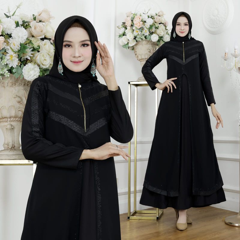 Ready gamis abaya dengan kombinasi bordir dan payet yang elegan...