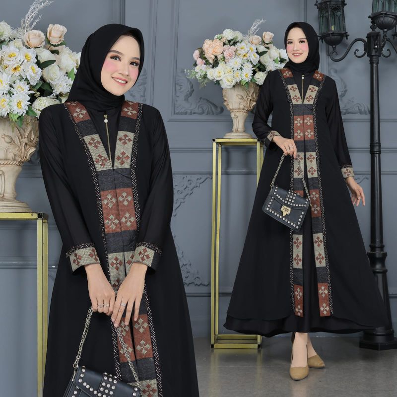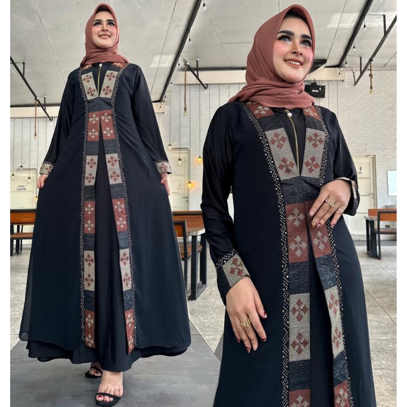 Ready gamis abaya dengan kombinasi bordir dan payet yang elegan...