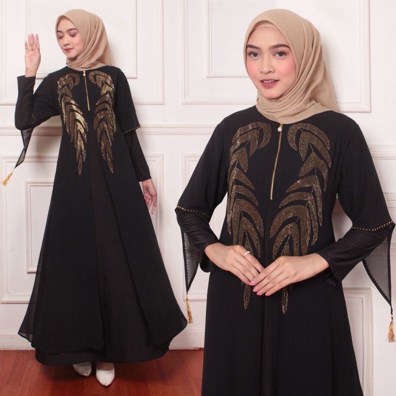 Ready gamis abaya dengan kombinasi bordir dan payet yang elegan...
