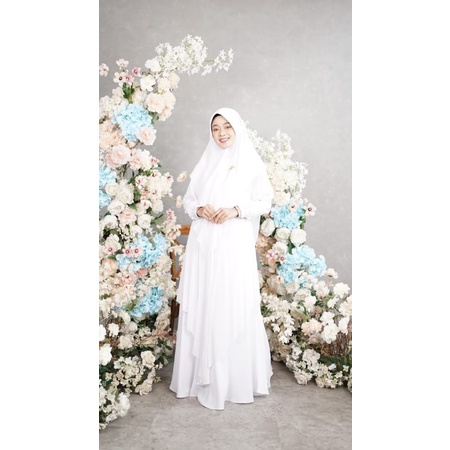 Detail GAMIS ALMEERA SET KHIMAR SNOWY • GAMIS UMRAH • GAMIS HAJI • ALWA HIJAB